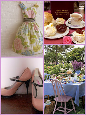 i love the rosy pink macaroons & DEFINITELY the scones with cream & jam! the summery tea dresses look so pretty too.