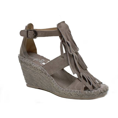 See how far this evolution of rope heels has come with this muted grey pair of  fringed sandals with matching grey heels, imagine how sharp they would look when worn with head to ankle bright orange or yellow and a large straw hat in the same colour. Happy Spring!